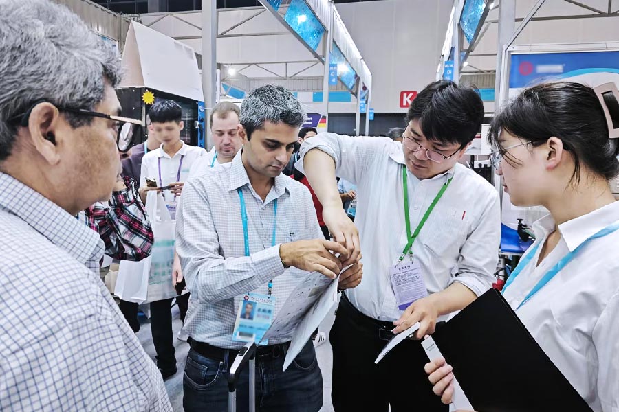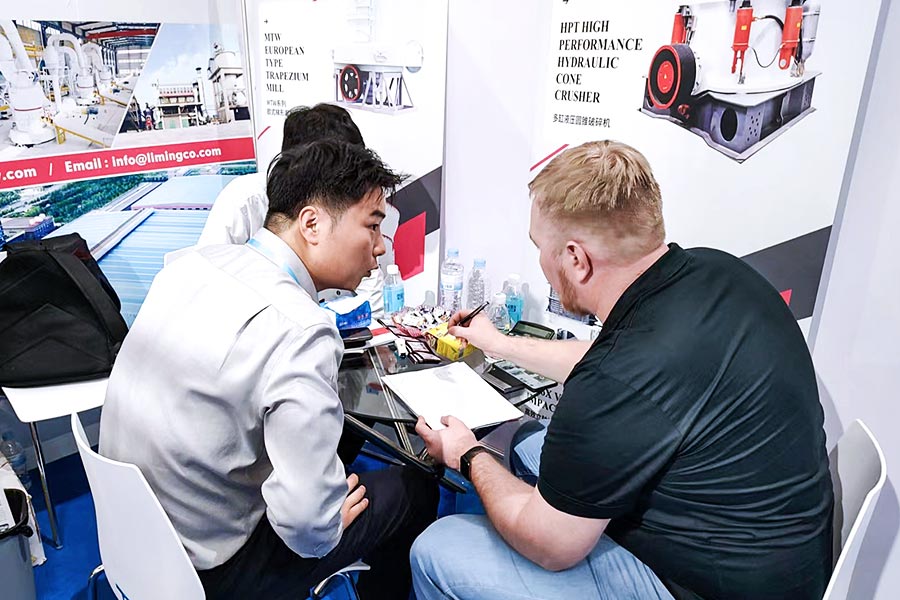會議現場,黎明重工發揮粉磨行業資源優勢,向全球客商和供應商展示黎明智造,為海內外客戶介紹公司在全球180多個國家的項目投放經驗,與全球客商零距離交流我司在非金屬礦制粉、環保脫硫石灰石制備、重鈣加工、煤粉制備等領域的典型案例,詳解生產線配置、工藝設計、維護難題等專業知識。